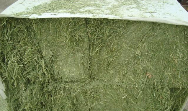 最想看到苜蓿干草的颜色是像田里未成熟苜蓿的翠绿色。这样的颜色表示晒干、加工得宜,没被雨淋过,没霉变,没发热(储存过程中);带有一股草香味,适口性好,胡萝卜素含量高,饲料价值高。